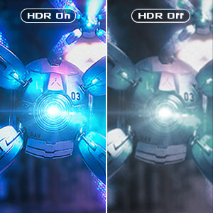 Die HDR-Technologie unterstützt ein breites Spektrum von Leuchtdichten, um einen größeren Farbbereich und einen höheren Kontrast als bei herkömmlichen Monitoren zu liefern. Das extrem helle Weiß und das tiefste Schwarz ermöglichen eine nie dagewesene Brillanz bei der Darstellung von Details. Zusätzlich wird eine Spitzenhelligkeit von 400cd/m² erreicht, um die Anforderungen der DisplayHDR 400-Zertifizierung zu erfüllen.