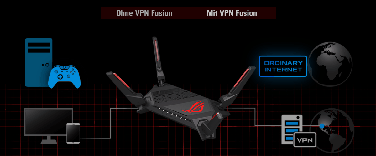 Mit VPN Fusion kannst du sowohl ein VPN als auch eine normale Internetverbindung nutzen - gleichzeitig! Selbst wenn andere Netzwerknutzer ein VPN verwenden müssen, kannst du also immer noch maximale Spielgeschwindigkeiten genießen.