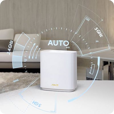 Im automatischen Modus weist der ZenWiFi XT9 Mesh-Router den angeschlossenen Geräten auf intelligente Weise das zuverlässigste verfügbare Wi-Fi-Band zu und sorgt so für ein nahtloses Wi-Fi-Erlebnis.