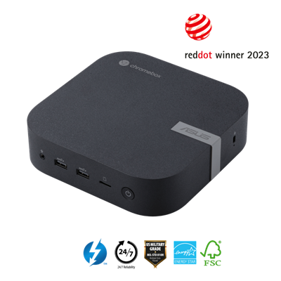 ASUS macht weiterhin große Fortschritte bei seinen Bemühungen um Nachhaltigkeit. Die ASUS Chromebox 5 besteht aus recyceltem Kunststoff (PCR) und hat eine kratzfeste, strukturierte Oberfläche, die eine lange Lebensdauer des Geräts gewährleistet. Darüber hinaus sind ChromeOS-Geräte wie die ASUS Chromebox 5 so konzipiert, dass sie bis zu 46% weniger Energie verbrauchen als vergleichbare Geräte der Konkurrenz. Als zusätzlicher Bonus ist jede ASUS Chromebox 5 in einer FSC-zertifizierten Verpackung verpackt. Hergestellt aus Post-Consumer Recycled Plastic (PCR) mit einer kratzfesten, strukturierten Oberfläche ChromeOS-Geräte verbrauchen bis zu 46% weniger Energie als vergleichbare Geräte der KonkurrenzDie Verpackung ist FSC-konform