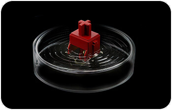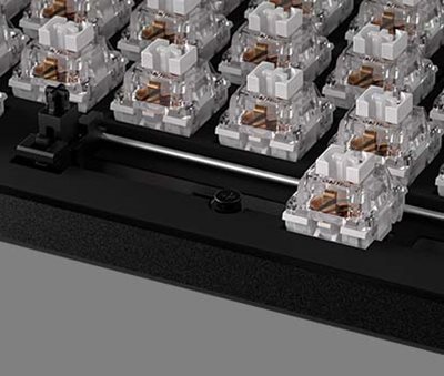Ein speziell abgestimmter, geschmierter Schalterstabilisator reduziert die Reibung beim Tastenanschlag im Vergleich zu herkömmlichen Stabilisierungsmechanismen erheblich und sorgt so für einen gleichmäßigen und stabilen Tastenanschlag bei längeren Tasten wie der Leertaste, der Umschalttaste und der Eingabetaste.