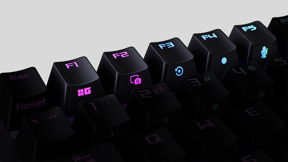 Die ROG PBT-Doubleshot-Tastenkappen bieten ein einzigartiges und hochwertiges Gefühl und sind zudem sehr langlebig. Das Tastendesign wurde mit mittelhohen Tastenkappen (ähnlich den Cherry-Profil-Tastenkappen) und einem kürzeren Schaft optimiert, um das Wackeln der Tasten zu reduzieren und ein komfortableres Benutzererlebnis zu bieten.  *das Material der Tastenkappen kann je nach Region variieren