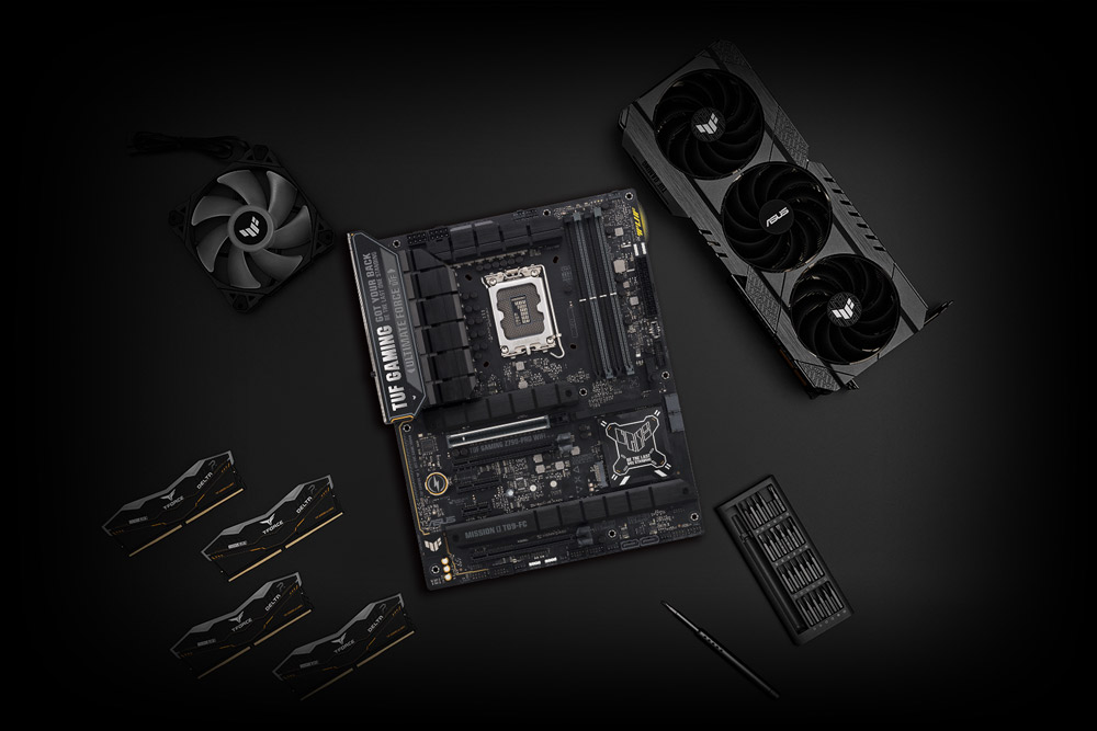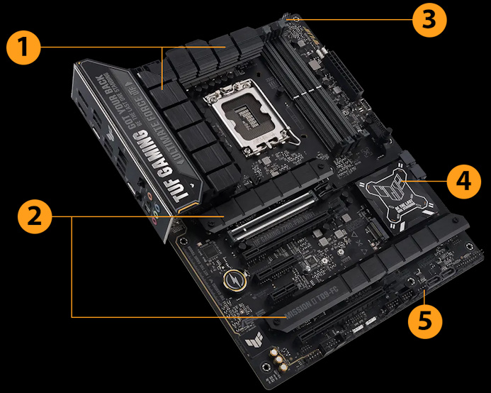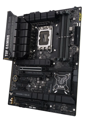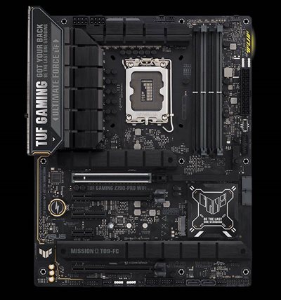 Das TUF GAMING Z790-PRO WIFI kombiniert die neuesten Intel® Prozessoren mit spieletauglichen Funktionen und militärischer Robustheit. Mit seiner erstklassigen Stromversorgung und dem umfassenden Kühlsystem liefert dieses Mainboard eine grundsolide Leistung für Marathon-Gaming. Und es wird strengen Dauertests unterzogen, um die Zuverlässigkeit unter schwierigen Bedingungen zu gewährleisten. Ein markantes graues gummiertes Emblem ziert den VRM-Kühlkörper und zelebriert die Kernessenz der TUF GAMING-Kraft.