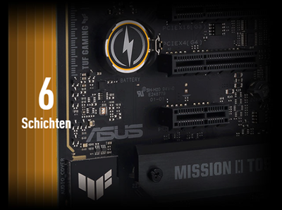 Sechs-Lagen-Platinen-Design Das mehrschichtige Platinen-Design leitet die Wärme schnell um die Spannungsregler herum ab, um die Gesamtstabilität des Systems zu verbessern und der CPU mehr Übertaktungsspielraum zu geben.