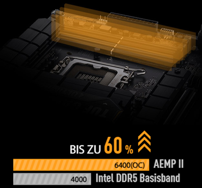 Entfessle DDR5 mit AEMP II ASUS Enhanced Memory Profile II (AEMP II) ist ein exklusives Firmware-Feature, das es Nutzern ermöglicht, höchste Speicherleistung und Kompatibilität mit optimierten Taktraten zu erreichen, selbst wenn sie PMIC-beschränkte Speichermodule verwenden, die kein XMP- oder EXPO-Profil bieten. Entwickelt mit einer flexiblen Trainingsmethode, vereinfacht AEMP II den Prozess der Feinabstimmung der Speichereinstellungen über die Basiskonfiguration hinaus und gewährleistet gleichzeitig die Systemstabilität. Das gilt sowohl für die Maximierung des Potenzials eines Einsteigermoduls als auch für die Vorbereitung eines Highspeed-Kits auf die ultimative Leistung. Jetzt bietet das AEMP II noch mehr Flexibilität. Mit dem neuesten Firmware-Update ermöglicht AEMP II den Nutzern, die Leistung einer Vier-DIMM-DDR5-RAM-Konfiguration zu optimieren, sogar mit einer Mischung aus verschiedenen Marken und Chips. Es war noch nie so einfach, die Speicherkapazität deines Builds durch das Hinzufügen zusätzlicher DIMMs zu erhöhen. Mit AEMP II kannst du eine optimierte Speicherleistung erzielen, auch wenn nicht alle vier Speichermodule exakt übereinstimmen, vorausgesetzt, alle vier DIMMs haben die gleiche Kapazität.* Die Ergebnisse können je nach den Fähigkeiten deiner CPU und deiner Speichermodule variieren. ** Die Testtabelle basiert auf einem Test mit einem Intel® i9-13900K Prozessor und 4x16 GB SK Hynix DDR5-5600 non-ECC UDIMMs, Modell HMCG78AGBUA081N.â