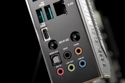 Optischer S/PDIF-Ausgang 5 x Audio-Buchsen 1 x USB 20 Gbps Anschluss (unterstützt USB Typ-C® mit bis zu 30 W PD Fast-Charge) 1 x USB 5 Gbps Header 2 x Front USB 2.0-Header Thunderbolt™ Header