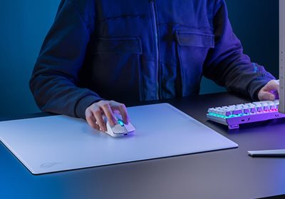 Dank seiner einzigartigen Oberflächenstruktur aus gehärtetem Glas ist das ROG Moonstone Ace L auf Geschwindigkeit ausgelegt, sodass schnelle Swipes viel konsistenter und müheloser sind. Davon profitieren vor allem FPS-Spieler, die niedrigere DPI-Einstellungen des Maussensors bevorzugen, um beim Zielen und Flicking eine bessere Kontrolle zu haben. Außerdem sorgt die behandelte Oberfläche des ROG Moonstone Ace L dafür, dass die Bewegungen noch präziser sind als je zuvor. Welche Mausfüße eignen sich am besten für die ROG Moonstone Ace L? Die ROG Moonstone Ace L funktioniert am besten mit PTFE-Mausfüßen. ROG rät davon ab, andere Fußmaterialien auf dem ROG Moonstone Ace L zu verwenden, insbesondere Glasfüße, da die Reibung sowohl die Oberfläche des Mauspads als auch die Mausfüße abnutzen würde.