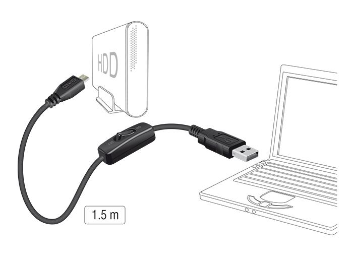USB Kabel Delock micro B -> A St/St 1.50m Ein/Aus-Schalter