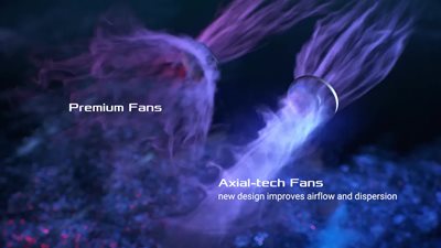 Die beiden bewährten Axial-Tech-Lüfter haben eine kleinere Nabe, die längere Flügel ermöglicht, und einen Sperrring, der den nach unten gerichteten Luftdruck erhöht.