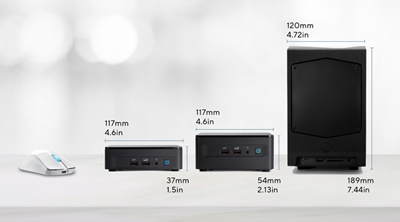 NUC Pro Formfaktoren Erhältlich als Mini-PCs oder anpassbare Kits, ist jedes Gerät für den 24x7-Betrieb geeignet.