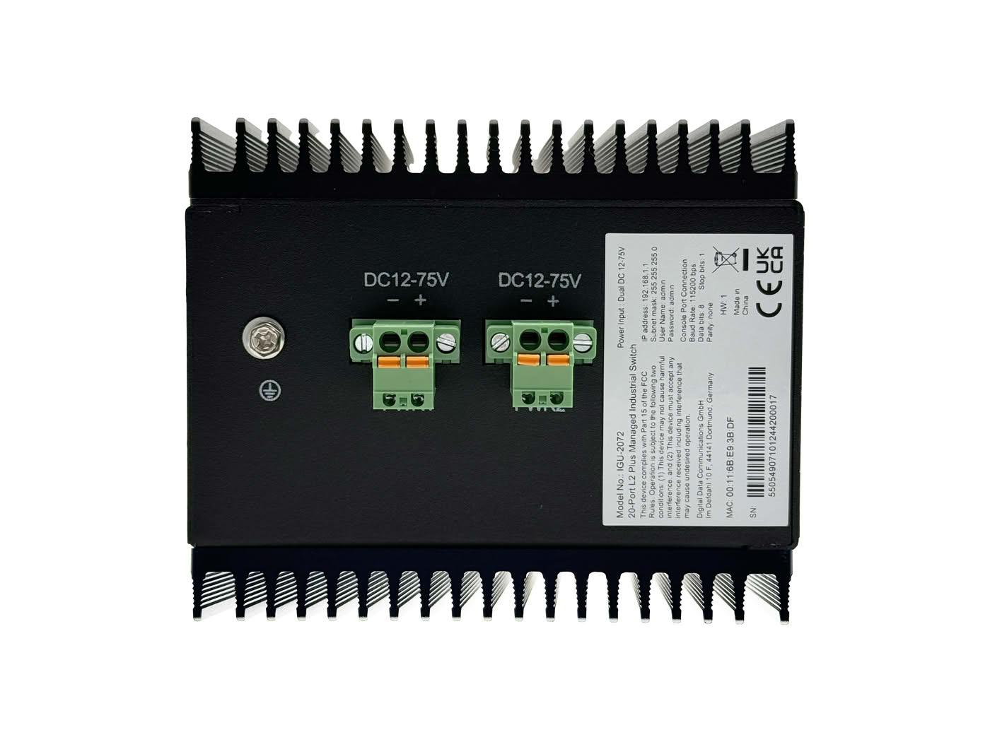 • Stellt zuverlässigen Betrieb durch redundante 12-75V DC Stromversorgung, erweiterten Überspannungsschutz (6KV) und ESD-Schutz (Luftentladung 15kV, Kontaktentladung 8kV) sicher.