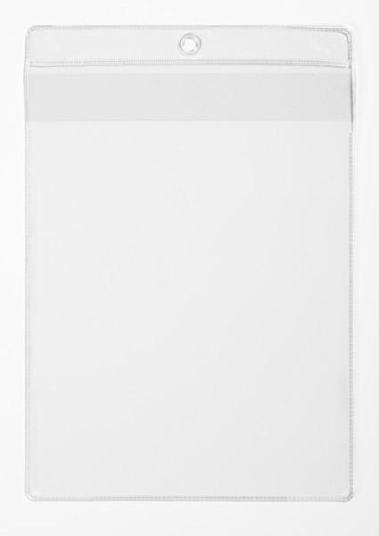 Sichttasche mit Schutzklappe mit mittig geschweißter LochungDokumentenechte Hülle aus extrastarker strapazierfähiger FolieHochformat, Schmalseite oben offenFür Format DIN A4