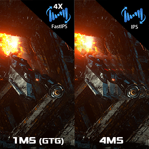 ASUS FastIPS Display ermöglicht es den Flüssigkristallen im Display, bis zu viermal schneller als bei konventionellen IPS-Panels zu schalten, was zu einer verbesserten Reaktionsfähigkeit führt. Mit einer Reaktionszeit von 1ms werden Nachzieheffekte und Bewegungsunschärfe praktisch komplett eliminiert. Dieser Bildschirm liefert zusätzlich eine überragende Bildqualität und hervorstechende Farben dank DCI-P3-95%-Farbraumdarstellung und einem beeindruckenden Kontrastverhältnis von 1.000:1. Der hohe Blickwinkel von 178 Grad sorgt dafür, dass Verzeichnungen und Farbabweichungen so gering wie möglich sind, sogar aus extremen Blickwinkeln.