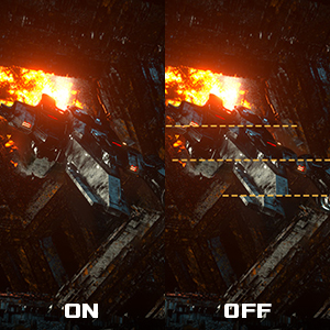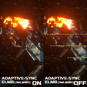 Mit ELMB SYNC können ELMB (Low-Motion-Blur-Technologie) und AdaptiveSync gleichzeitig aktiviert werden, wodurch Ghosting und Tearing eliminiert werden, um eine scharfe Bilddarstellung und hohe Bildraten im Spiel zu erzielen. ASUS Extreme Low Motion Blur bietet eine Reaktionszeit von 1ms (MPRT), um Nachziehen und Bewegungsunschärfe zu vermeiden. Zusätzlich werden bewegte Objekte schärfer dargestellt, was zu einem flüssigeren und reaktionsschnelleren Gameplay führt.