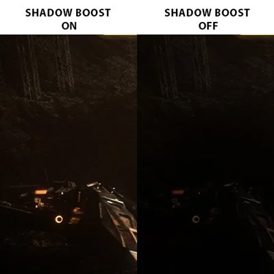 Die ASUS-Shadow-Boost-Technologie macht dunkle Bereiche der Spielwelt besser erkennbar, ohne helle Areale überzubelichten. Dies führt nicht nur zu mehr Übersicht, sondern erleichtert auch das Aufspüren von versteckten Gegnern in dunklen Ecken.
