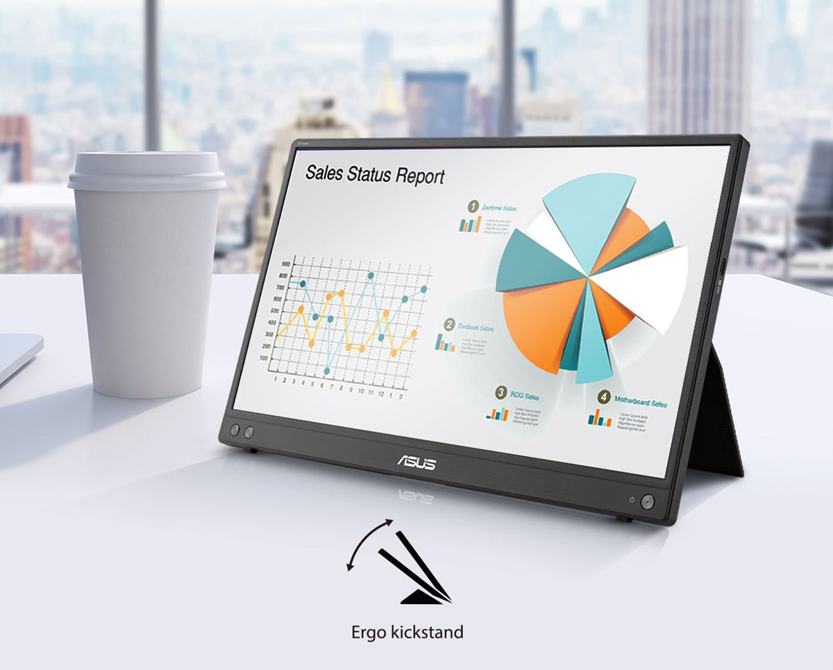 Der ASUS ZenScreen™ MB16AHV ist ideal für das Leben unterwegs. Dieses schlanke, tragbare Display wiegt nur 0,9 kg und hat ein 10,5 mm schmales Profil, so dass es problemlos in jede Reisetasche passt und jederzeit und überall produktiv einsetzbar ist.