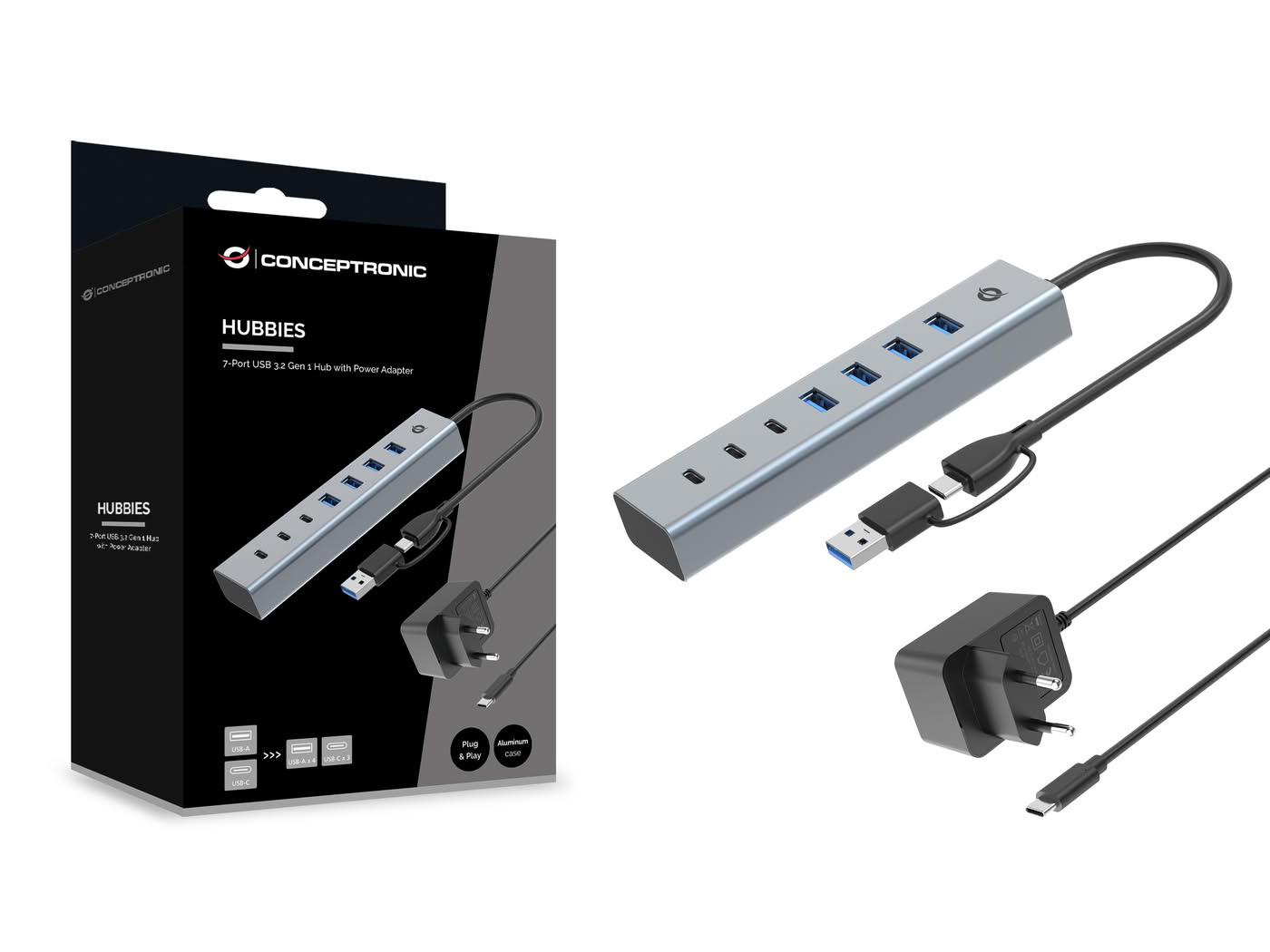 Dieser 7-Port USB 3.2 Gen 1 Hub ermöglicht es Ihnen, die USB-A- oder USB-C-Kapazität Ihres Geräts um 7 zusätzliche USB-Ports zu erweitern. Der Hub erleichtert das Anschließen von bis zu 7 USB-kompatiblen Peripheriegeräten oder Gadgets an Ihr MacBook, Chromebook Pixel oder jeden ähnlichen Laptop der neuesten Generation, der mit USB-A- oder USB-C-Anschlüssen ausgestattet ist. Er bietet eine stabile und effiziente Datenübertragung mit Übertragungsgeschwindigkeiten von bis zu 5Gbps. Zusätzlich verfügt der Hub über einen USB-C-Stromanschluss, der an ein Netzteil angeschlossen werden kann, um den Hub bei Anschluss an hochleistungsfähige Geräte wie HDDs oder SSDs mit Strom zu versorgen und so eine stabile Leistung zu gewährleisten.