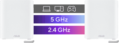 Mit dem überlegenen 6-GHz-Band bietet ZenWiFi BT8 blitzschnelles Tri-Band-WLAN mit 7 Geschwindigkeiten von bis zu 14 Gbit/s. Es gewährleistet eine umfassende WLAN-Kompatibilität für eine Vielzahl von Geräten, von modernen WLAN-6E-Mobilgeräten bis hin zu älteren IoT-Geräten.