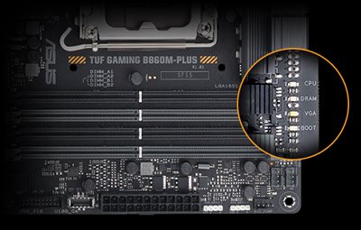 Mit den integrierten Q-LED-Fehlerbehebungsleuchten können PC-Bauer schnell feststellen, ob die wichtigsten Komponenten - CPU, Arbeitsspeicher, Grafikkarte, Laufwerke - während des Starts normal funktionieren. Es kann dich auch warnen, wenn Speichermodule nicht richtig installiert wurden - sogar vor dem Booten.
