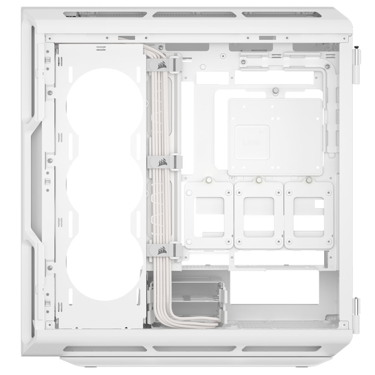 Corsair 5000T. Formfaktor: Midi Tower, Typ: PC, Produktfarbe: Weiß. Unterstützte Stromversorgungs-Formfaktoren: ATX. Durchmesser unterstützte Vorderseitenlüfter: 120,140 mm, Durchmesser unterstützte Seitenlüfter: 120 mm, Durchmesser unterstützter Rückseitenlüfter: 120 mm. Unterstützte Hard-Disk Drive Größen: 3.5", SSD-Formfaktor: 2.5". Breite: 255 mm, Tiefe: 545 mm, Höhe: 550 mm