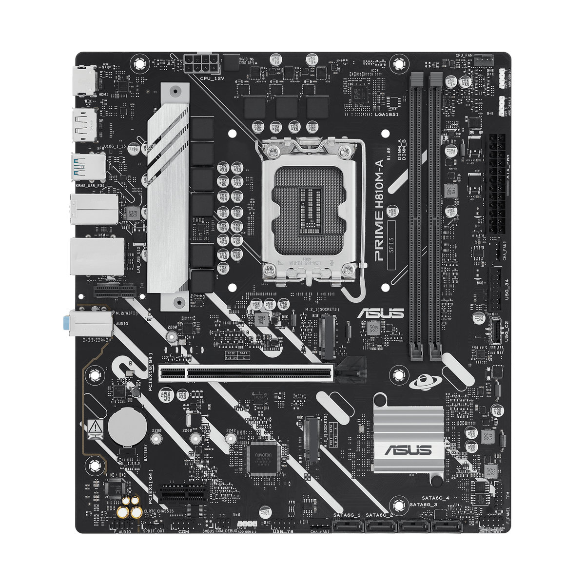 ASUS PRIME H810M-A-CSM Mainboard Sockel Intel LGA 1851 (Intel H810, mATX, DDR5 Speicher, PCIe 4.0 x16 Steckplatz, 2x PCIe 4.0 M.2, HDMI, DisplayPort, AuraSync)