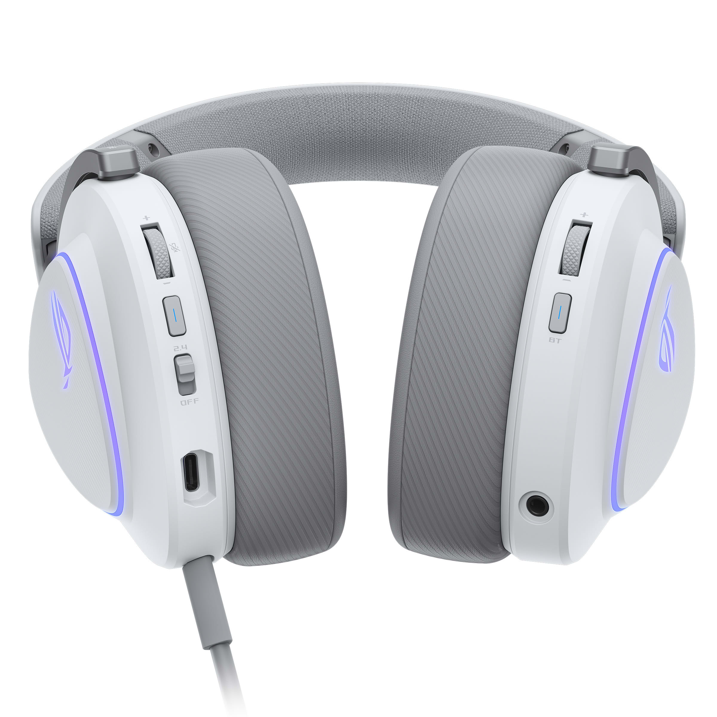 Kabelloses Tri-Mode-Gaming-Headset mit ROG SpeedNova, 50-mm-Membran-Treibern mit Titanbeschichtung und verfeinerter kabelloser Klangsignatur, 10-mm-Superbreitband-Bügelmikrofon, DualFlow Audio, bis zu 110 Stunden Akkulaufzeit, leichtes 318-g-Design und ASUS Aura Sync RGB-Beleuchtung Vielseitige dreifache Verbindungsmodi: Mit Bluetooth® 2,4 GHz und einem kabelgebundenen 3,5-mm-Anschluss für umfassende Kompatibilität mit PCs, Konsolen und mobilen Geräten ROG SpeedNova Wireless-Technologie: Erlebe Audio mit extrem niedriger Latenz, zuverlässige Verbindungen und optimierte Energieeffizienz im 2,4-GHz-Modus Unglaubliche Audio-Immersion: 50-mm-Titanmembran-Treiber, hochauflösendes 24-Bit-96-kHz-Audio* und eine verfeinerte kabellose Klangsignatur bieten natürlichen, realistischen Klang *Im 2,4-GHz-Modus 10 mm Super-Breitband-Boom-Mikrofon: Deckt einen größeren Frequenzbereich ab, um auch bei intensiver Kommunikation im Spiel eine natürliche, detaillierte und klare Stimme zu gewährleisten DualFlow Audio: Gleichzeitige Audiowiedergabe von zwei angeschlossenen 2,4-GHz- und Bluetooth®-Geräten für mehr Flexibilität; du kannst sogar einen Telefonanruf annehmen, indem du einfach die Taste an der Hörmuschel drückst Außergewöhnliche Akkulaufzeit und schnelles Aufladen: Genieße bis zu 110 Stunden* im 2,4-GHz-Modus, wobei eine 15-minütige Schnellladung bis zu 11 Stunden Betriebszeit ermöglicht Perfekter Komfort: Leichtes 318-Gramm-Design mit zwei Arten von ergonomischen D-förmigen Ohrpolstern für komfortables Gaming den ganzen Tag