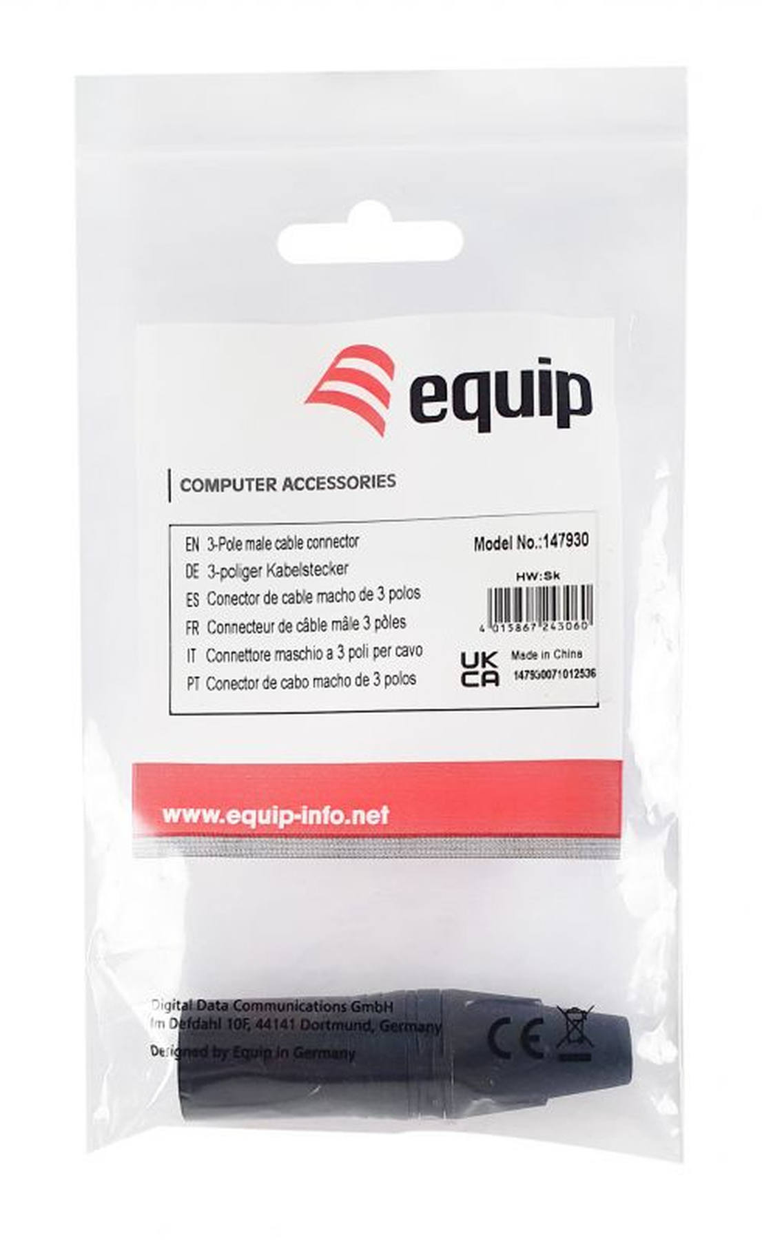 Der 3-polige XLR Kabelstecker Equip 147930 ist eine professionelle Komponente für die zuverlässige Signalübertragung in Audio-, Beleuchtungs- und Multimediaanwendungen. Mit seiner 3-poligen Kontaktkonfiguration unterstützt dieser Stecker symmetrische Audiosignale und sorgt für klare Klangqualität mit reduziertem Rauschen und Störungen. Er wird häufig in professionellen Geräten wie Mikrofonen, Mischpulten, Verstärkern und Lautsprechern verwendet und ist somit ein zentrales Element in Bühnen-, Studio- und Rundfunkumgebungen.